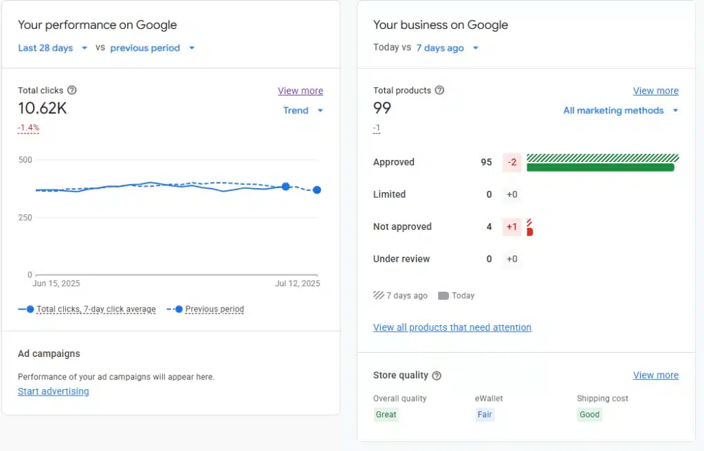 - Google Ads: המרצ'נט סנטר משתלב בצורה חלקה עם Google Ads, ומאפשר לך ליצור ולנהל קמפיינים פרסומיים להגדלת הנראות של המוצרים שלך.